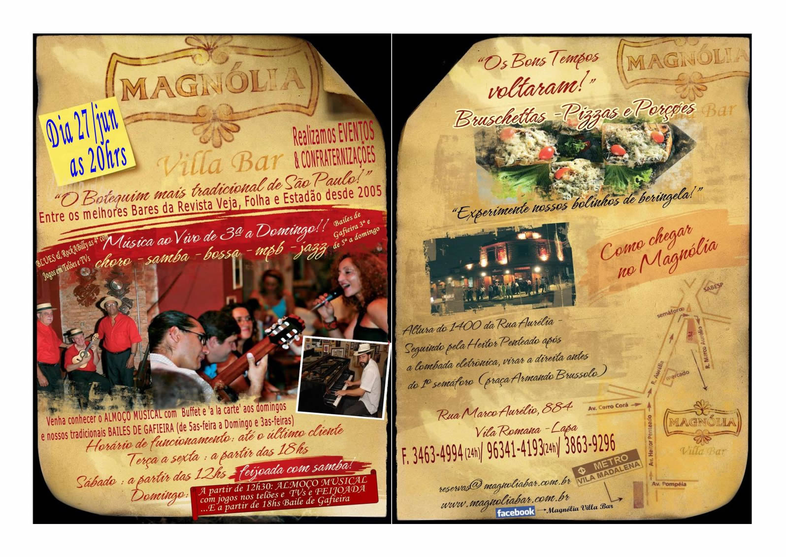 Pagamento: diretamente ao Magnólia Villa Bar.